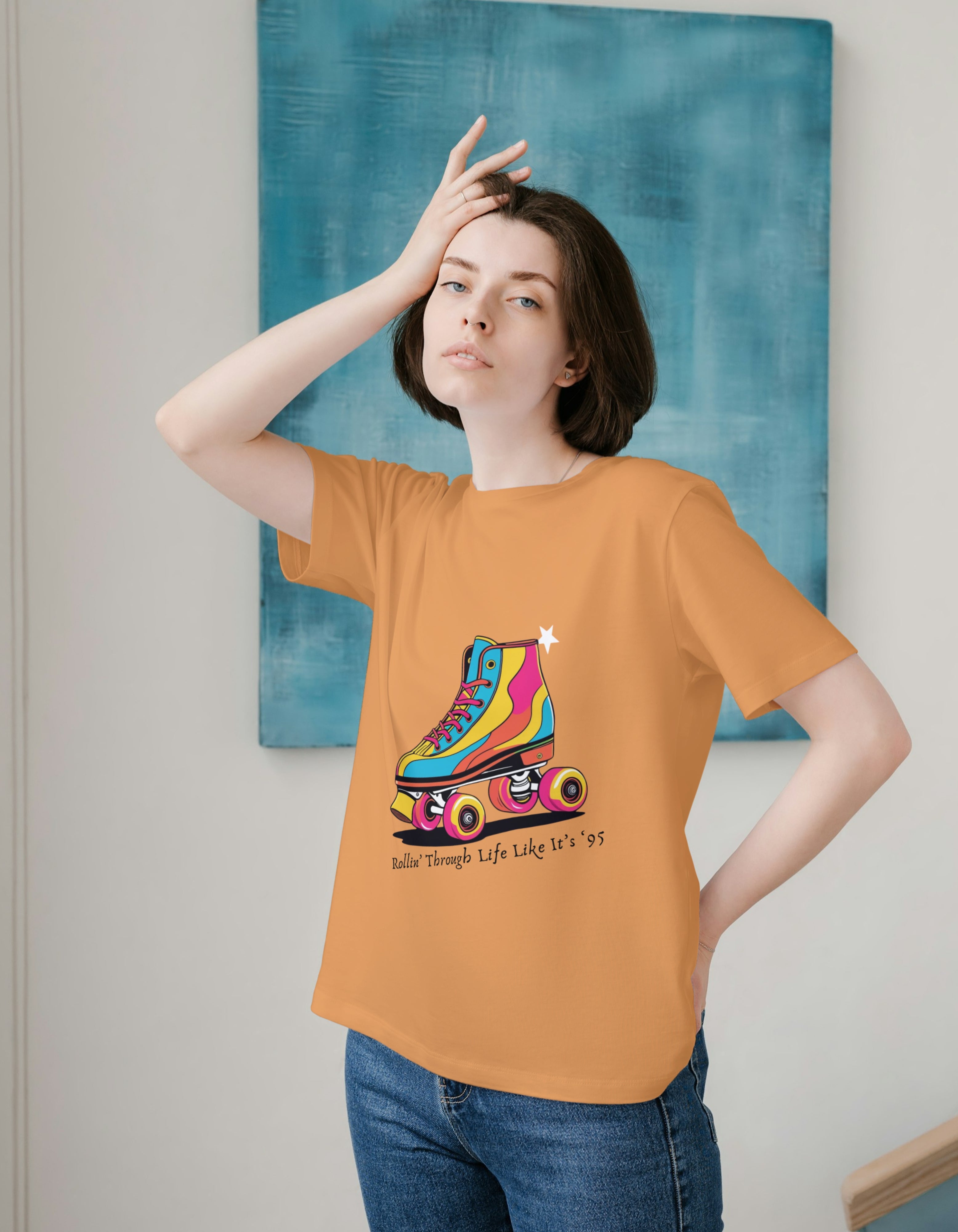 This bright and bold roller skate artwork is a shout-out to carefree days, open roads, and disco nights. Whether you're vibing with retro jams or just want to feel the breeze of freedom, this design rolls perfectly with your colorful soul.
