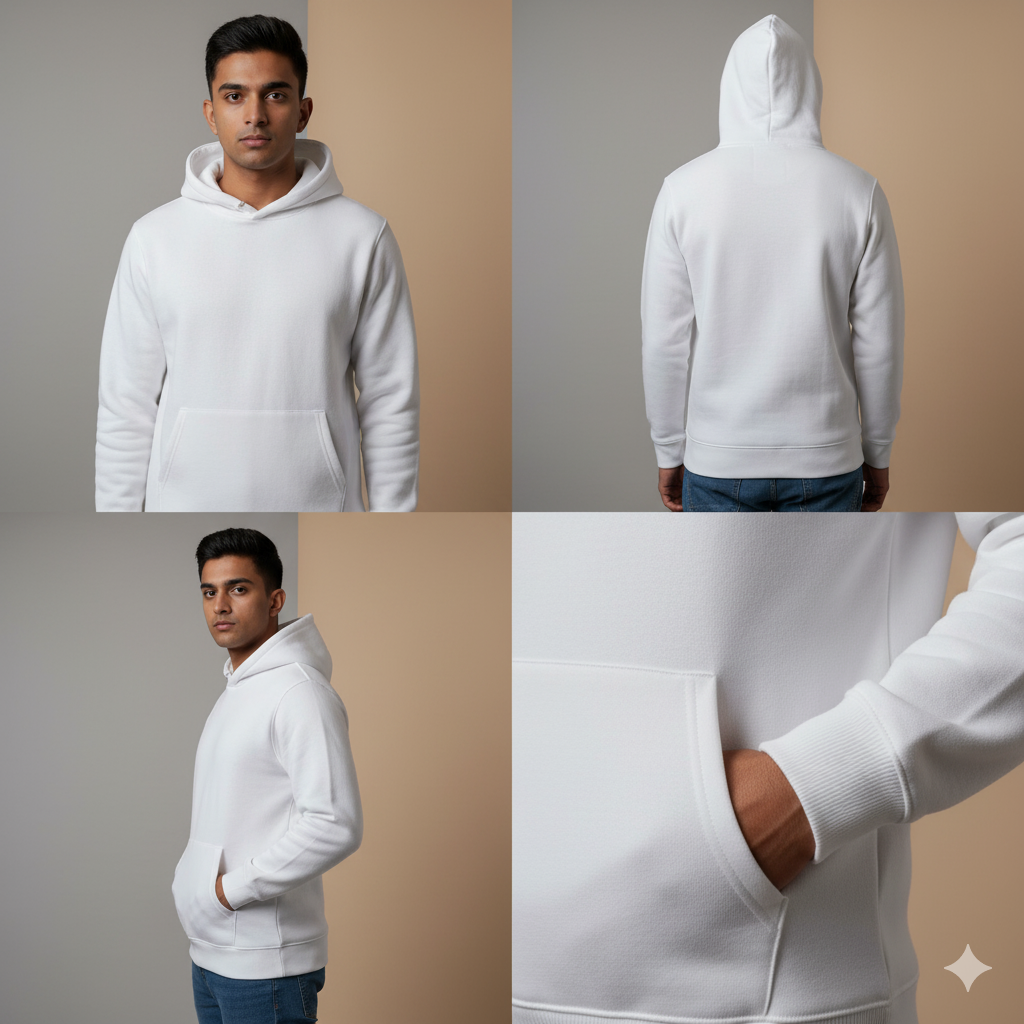 Know more →Stay effortlessly cozy with our White Regular Fit Hoodie — designed for those who love simplicity, comfort, and everyday style. Made from 100% cotton, 300 GSM brushed fleece, this hoodie wraps you in warmth without feeling too heavy. The fabric is soft, breathable, and smooth on the skin — perfect for chilly days and relaxed evenings alike.